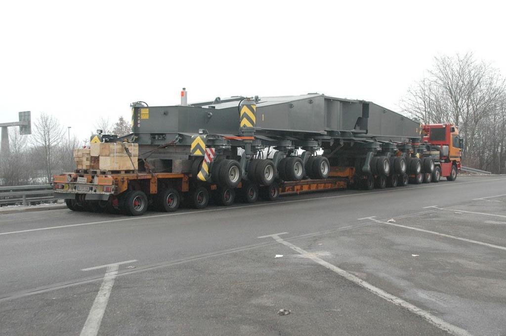 Semi surbaisée 10 éssieux tirée par un tracteur Mercedes