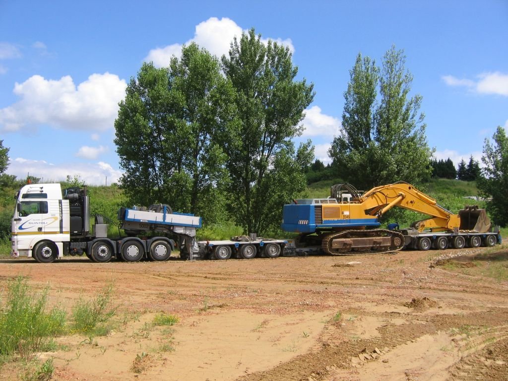 Semi surbaisée 8 éssieux avec une grue tirée par tracteur Man