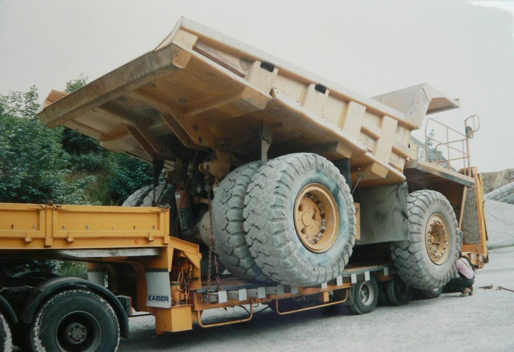 Semi surbaisée 3 éssieux avec un dumper 777 D Caterpillar