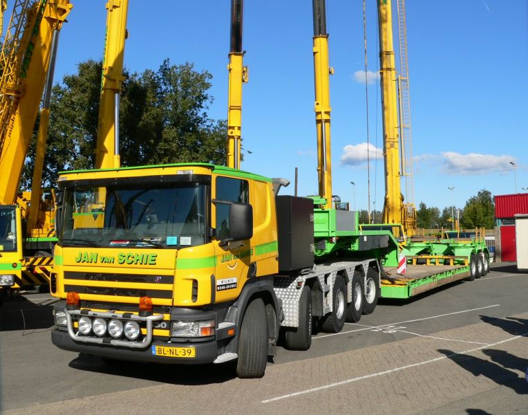Semi surbaisée 3 éssieux tirée par un tracteur Scania